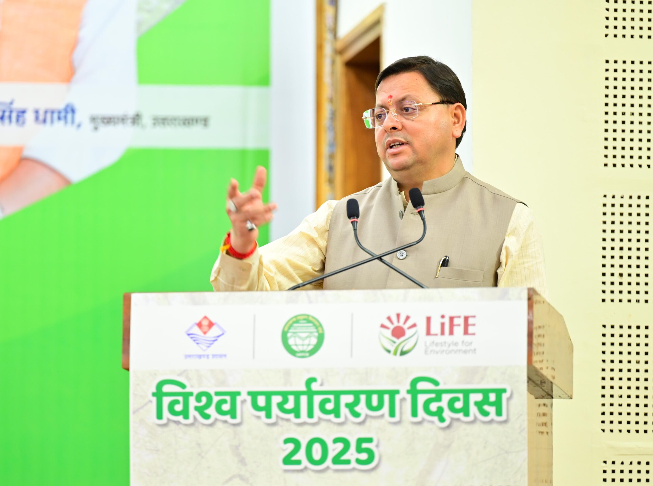 देहरादून संवाददाता- मुख्यमंत्री श्री पुष्कर सिंह धामी ने गुरुवार को मुख्यमंत्री आवास स्थित मुख्य सेवक सदन में विश्व पर्यावरण दिवस के अवसर पर पर्यावरण के क्षेत्र में सर्वश्रेष्ठ कार्य करने वाले लोगों को सम्मानित किया। सुन्दर लाल बहुगुणा प्रकृति एवं पर्यावरण संरक्षण पुरस्कार2025 (सरकारी श्रेणी) में नगर निगम रूद्रपुर को सम्मानित किया गया। नगर निगम रुद्रपुर से उप नगर आयुक्त श्रीमती शिप्रा जोशी ने यह पुरस्कार प्राप्त किया। सुन्दर लाल बहुगुणा प्रकृति एवं पर्यावरण संरक्षण पुरस्कार2025 ( गैर सरकारी श्रेणी) में श्री विजय जड़धारी एवं श्री प्रताप सिंह पोखरियाल को सम्मानित किया गया। उत्तराखंड प्रदूषण नियंत्रण बोर्ड के जागरूकता पोस्टर का विमोचन एवं इको टूरिज्म कॉर्पाेरेशन द्वारा तैयार किए गए पोर्टल का भी मुख्यमंत्री ने लोकार्पण किया। इस अवसर पर मुख्यमंत्री ने प्लास्टिक मुक्त उत्तराखण्ड की शपथ दिलाई एवं स्कूली बच्चों को कपड़े के बैग प्रदान किये। मुख्यमंत्री ने वन विभाग को इस वर्ष प्रदेश के प्रत्येक वन डिवीज़न में कम से कम एक हज़ार फलदार वृक्ष लगाए जाने के निर्देश दिए। जिससे जंगली जीवजंतुओं के लिए पर्याप्त आहार मिल सके। मुख्यमंत्री ने प्रदेशवासियों और यात्रियों से आग्रह किया कि जीवजंतुओं को ऐसी वस्तुएँ न खिलाएँ जो उनकी सेहत के लिए हानिकारक हों। उन्होंने आह्वान किया कि जन्मदिन, विवाह की वर्षगांठ और अन्य महत्वपूर्ण अवसरों पर अवश्य पौधारोपण करें। ऐसे प्रयासों के संकल्प से ही हम पर्यावरण संरक्षण को बढ़ावा दे पाएंगे। मुख्यमंत्री ने सभी को विश्व पर्यावरण दिवस की शुभकामनाएं देते हुए कहा कि उत्तराखंड प्राकृतिक सौंदर्य और जैव विविधता से परिपूर्ण राज्य है। घने जंगल, पवित्र नदियाँ, हिमालयी ग्लेशियर हमारे राज्य की भौगोलिक पहचान है। मुख्यमंत्री ने कहा कि प्रधानमंत्री के प्रयासों से भारत अक्षय ऊर्जा उत्पादन के क्षेत्र में विश्व स्तर पर आगे बढ़ रहा है। सोलर मिशन, इलेक्ट्रिक मोबिलिटी, ग्रीन हाइड्रोजन मिशन, स्वच्छ भारत मिशन, नमामि गंगे अभियान और प्लास्टिक मुक्त भारत अभियान जैसी योजनाएं पर्यावरण संरक्षण में अहम भूमिका निभा रही हैं। उन्होंने कहा राज्य सरकार, लोकपर्व हरेला को प्रकृति संरक्षण के महापर्व के रूप में बृहद स्तर पर मनाती है। प्रदेश के नौले, धारे एवं वर्षा आधारित नदियों जैसे परंपरागत जल स्रोतों के संरक्षण के लिए ’स्प्रिंग एंड रिवर रिजुविनेशन अथॉरिटी (सारा) का गठन किया है। मुख्यमंत्री ने बताया कि बीते एक वर्ष में प्रदेश में लगभग 6,500 से अधिक जल स्रोतों के संरक्षण एवं उपचार का कार्य सफलतापूर्वक किया गया है। लगभग 3.12 मिलियन घन मीटर वर्षा जल का संचयन भी किया गया है। चा
